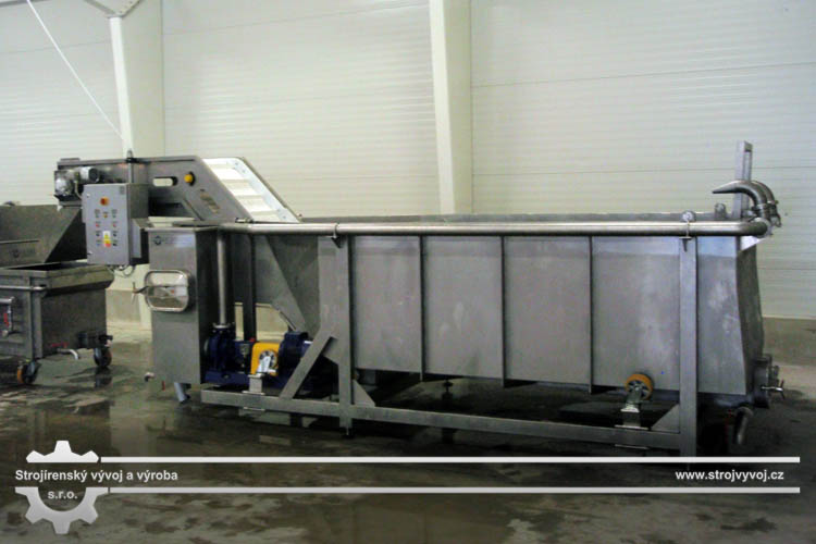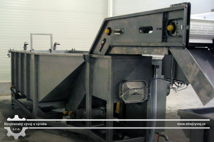Wanna płucząca znajduje się na początku linii przeznaczonej do mycia warzyw. Z wanny surowiec jest przesuwany do myjki szczotkowej albo powietrznej według rodzaju mytego surowca. Wygoda używania wanny płuczącej w procesie mycia polega na tym, że surowiec wsypywany jest do zasobnika z wielką ilością wody i tym samym minimalizowane jest jego uszkodzenie mechaniczne. W wannie płuczącej usuwane są większe zanieczyszczenia a resztki gleby na surowcu podlegają odmoczeniu. Cały proces mycia surowca jest dzięki wanie płuczącej doskonalszy i bardziej równomierny, ponieważ nawożenie surowca jest dozowane a wynoszenie przebiega kontynualnie.